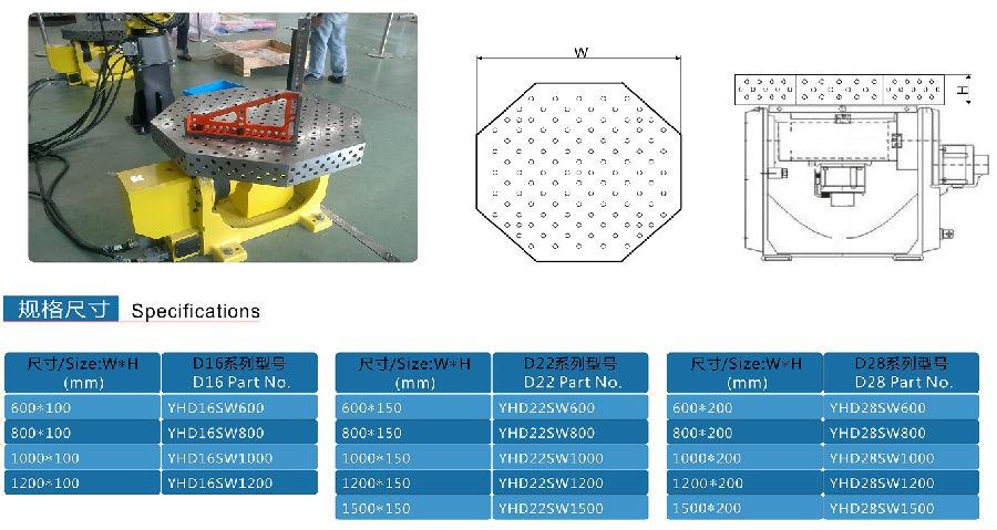 D16/D28 三維柔性八角臺復(fù)雜的面體設(shè)計讓它具備了多方向空間擴(kuò)展這一功能從而滿足部分 焊接件的工藝要求,同時局限了它的規(guī)格大小和使用范圍。D16/D28 三維柔性八角臺一般配合變位機(jī)機(jī)器人焊接和旋轉(zhuǎn)機(jī)構(gòu)焊接使用,主要用于多面體同工序焊接件焊接,它的效率可達(dá)普通工裝的三倍以上。